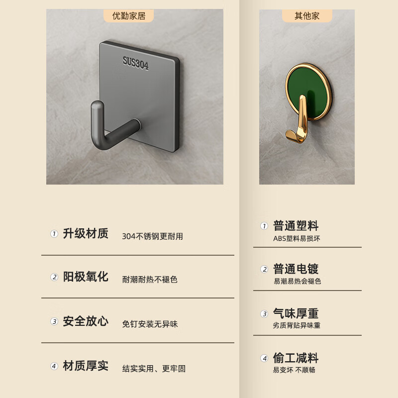 304 stainless steel hook viscose powerful bearing-free toilet kitchen door rear wall-mounted towel sticky hook-Taobao