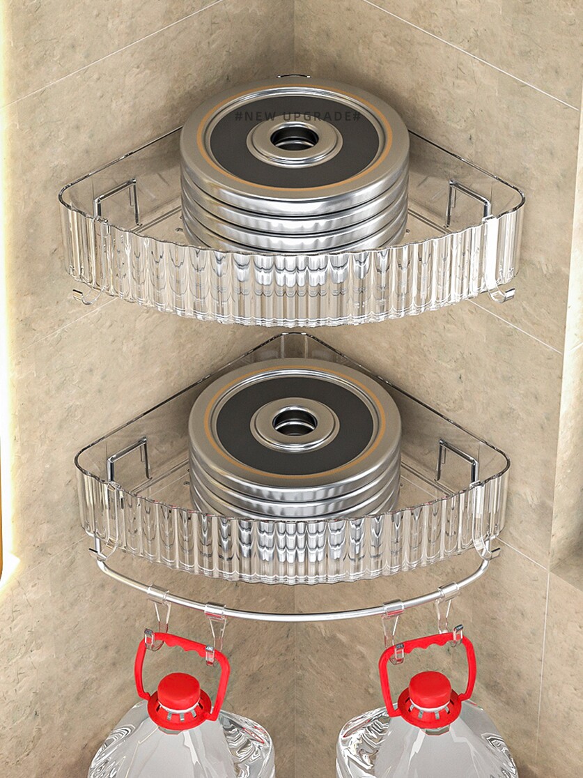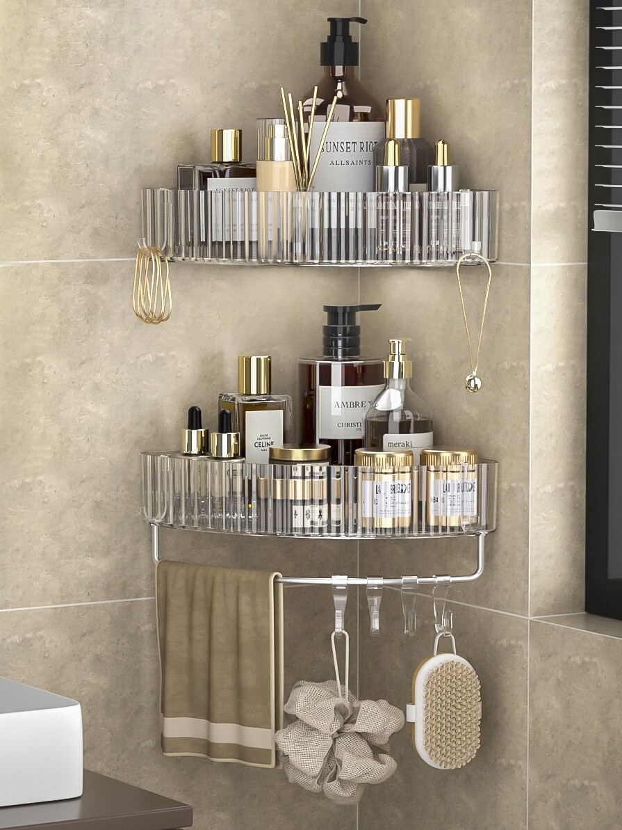 Bathroom bathroom shelf transparent punch-free toilet washstand bath wall storage wall-mounted tripod