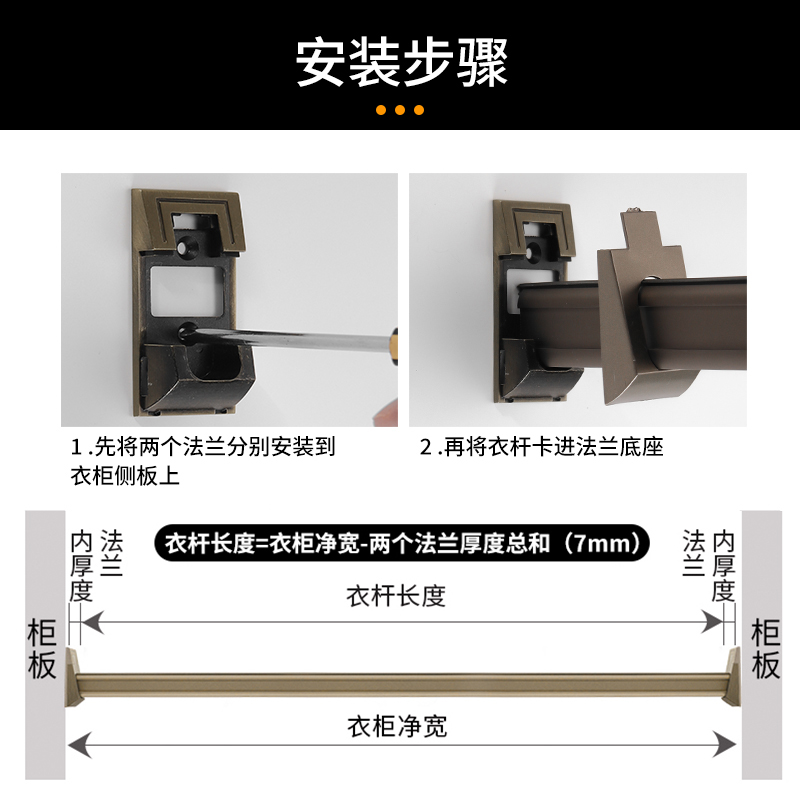 Thickened Aluminum Alloy Wardrobe Interior Hanging Clothes Rod Wardrobe Crossbar Closet Hanging Rod clothes rack Hanger Flange Accessories-Taobao