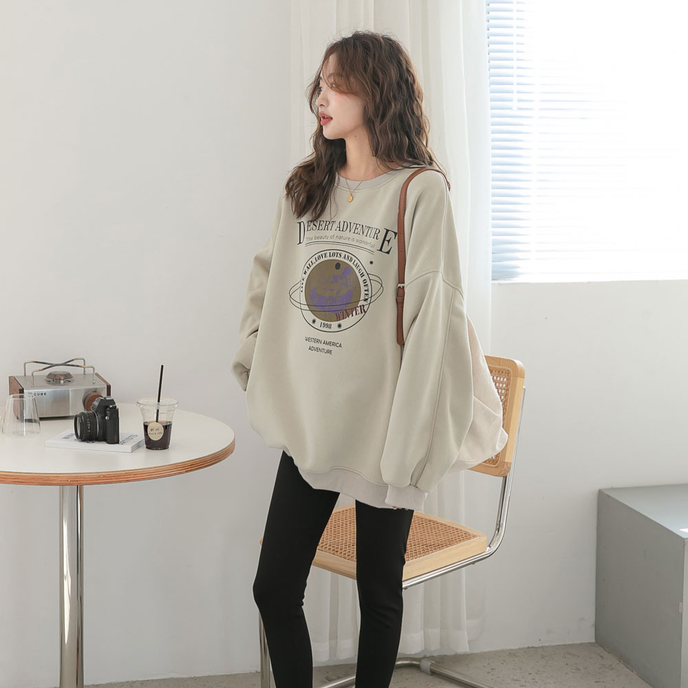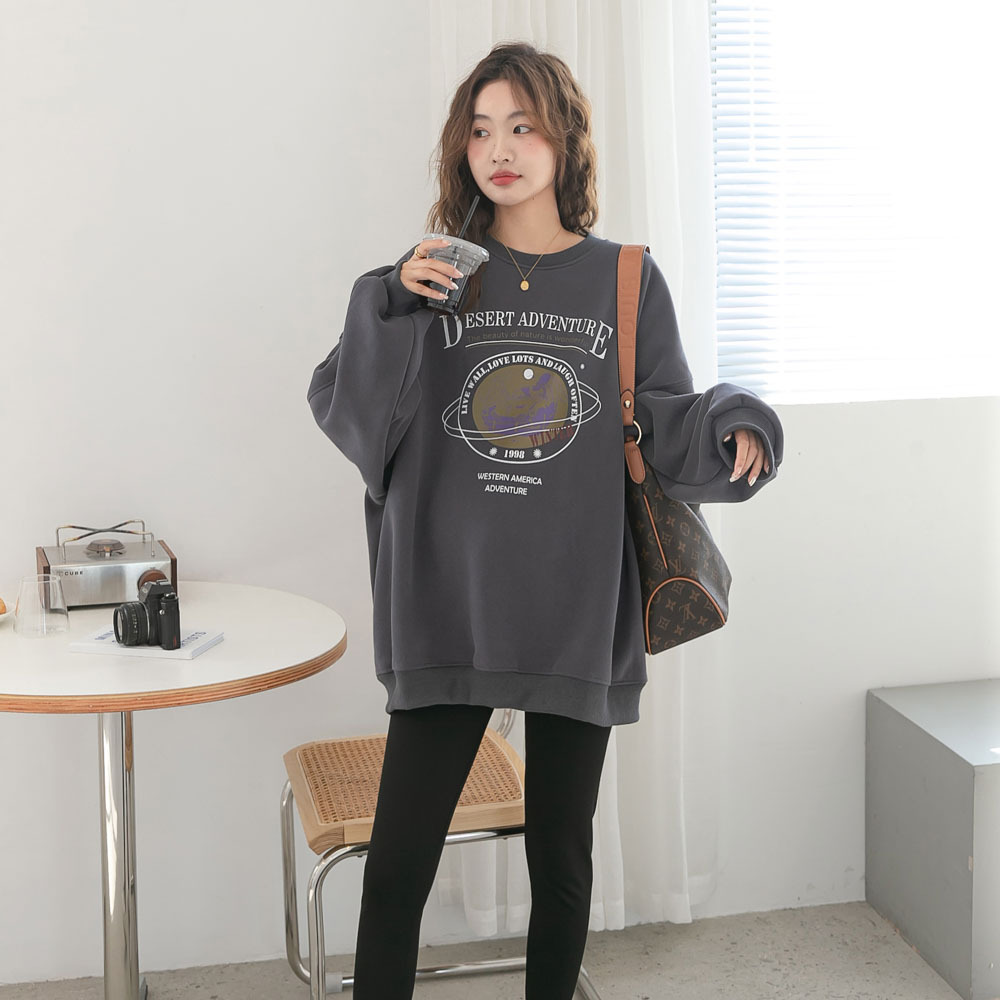 New pregnant women's fashion printing cartoon age decommissioning round collar jacket plus thicker cover tide