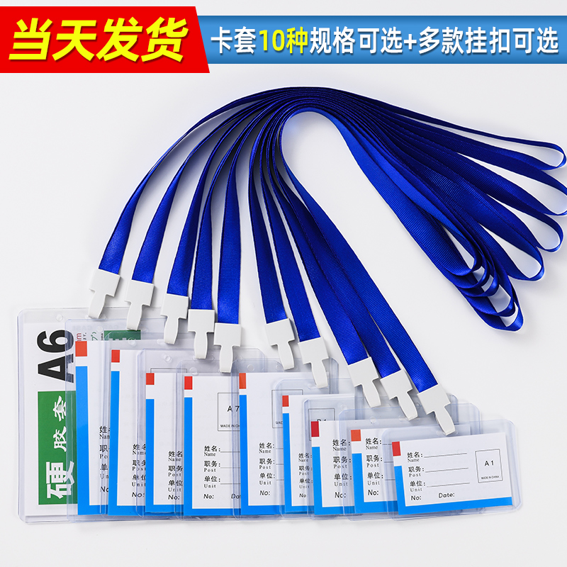 Hard cutting card transparent work certificate cutting sleeve with hanging rope exhibi exhibition tour of the guest certificate factory card work card Campus Card Chest Card Cover Student Out of Entrance Certificate Hanging neck Neck Document Rubber Sleeve Custom-Taobao