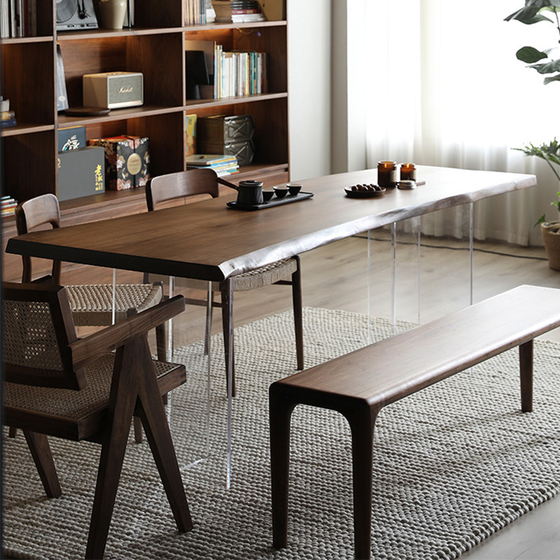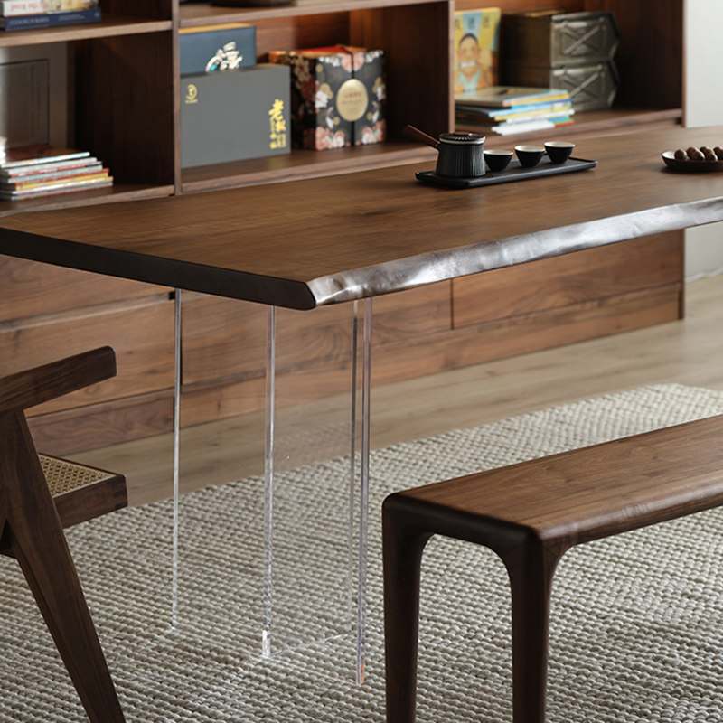 Walnut solid wood board tea table combined Chinese boss desk log desk table