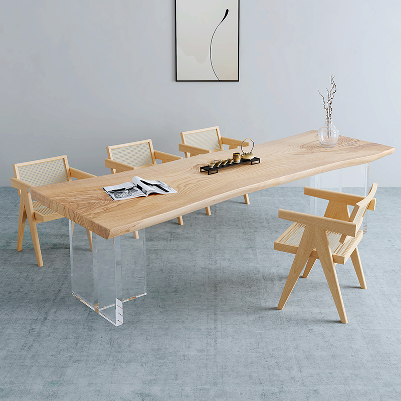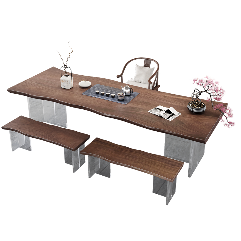 Log board table solid wood tea table new Chinese tea table combined acrylic household office tea table