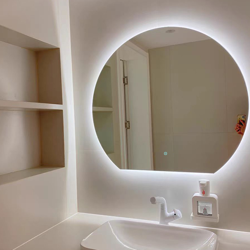 Semi-smart semi-circular bathroom mirror led with light bathroom wall-mounted round mirror wall-mounted dressing table makeup mirror