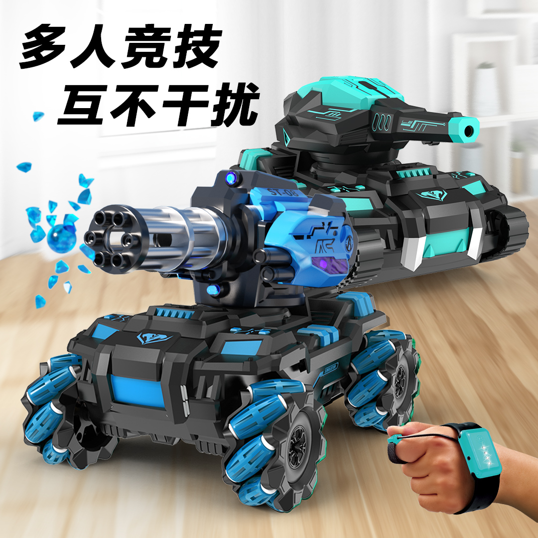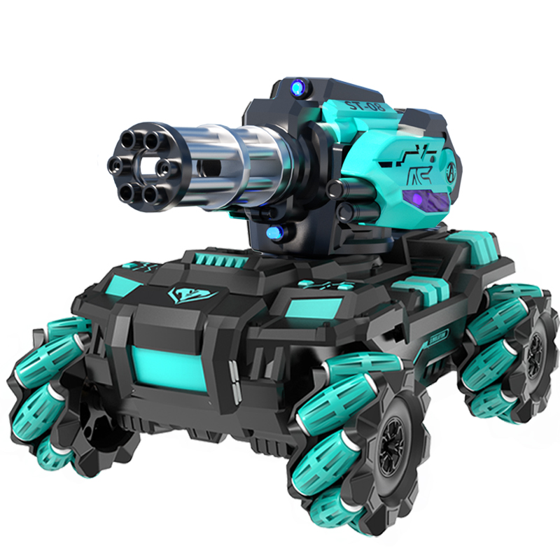 (Escalation Plus 30CM Dimensions) (Upgrade Gatlin Cannon Tube Will Turn) (Middle Number) Drift Wheel-Ink Green Black Sound Effect (Handle Remote Control) (Middle Number) Drift Wheel-Treasure Blue Black