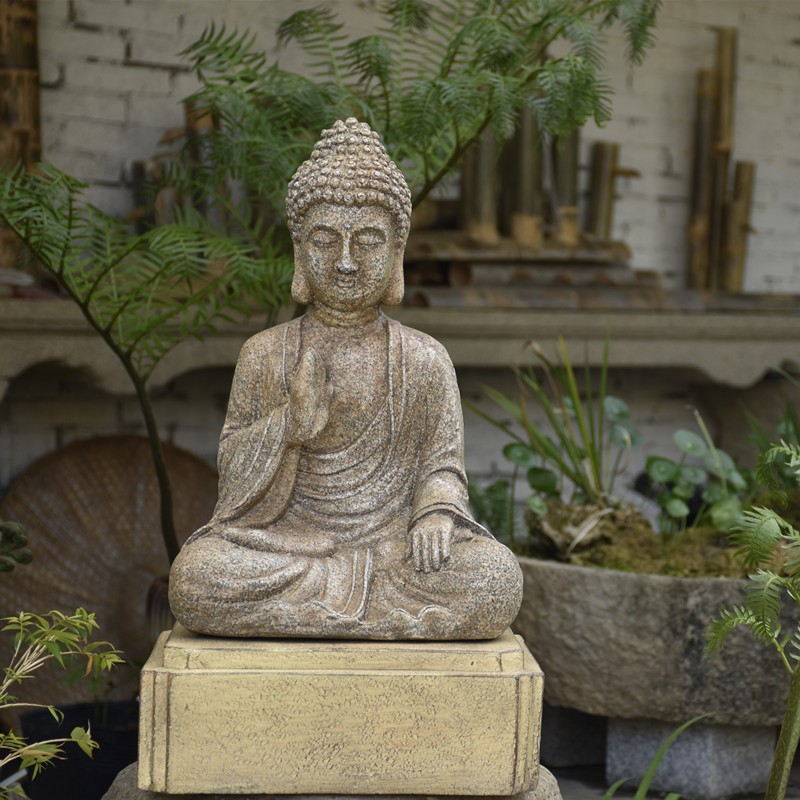 Outdoor lawn garden Chinese style Zen Buddha statue simple atmospheric layout of top floor balcony decoration
