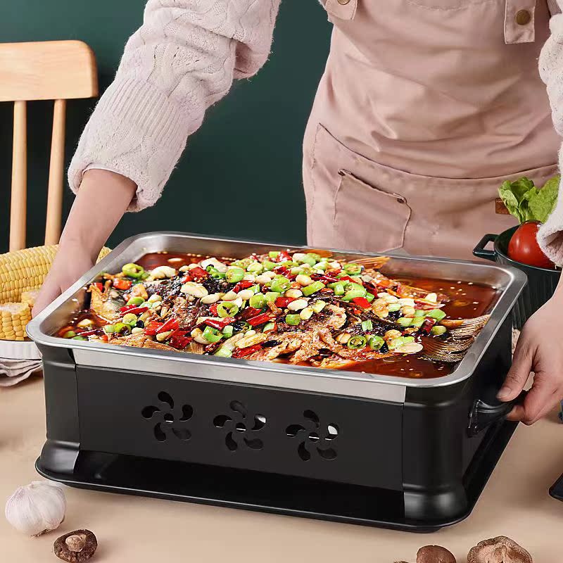 Stainless Steel Grilled Fish Oven Commercial Charcoal Domestic Carbonbake Alcohol Stove Restaurant Seafood Large Café Rectangular Grilled Fish Pan-Taobao