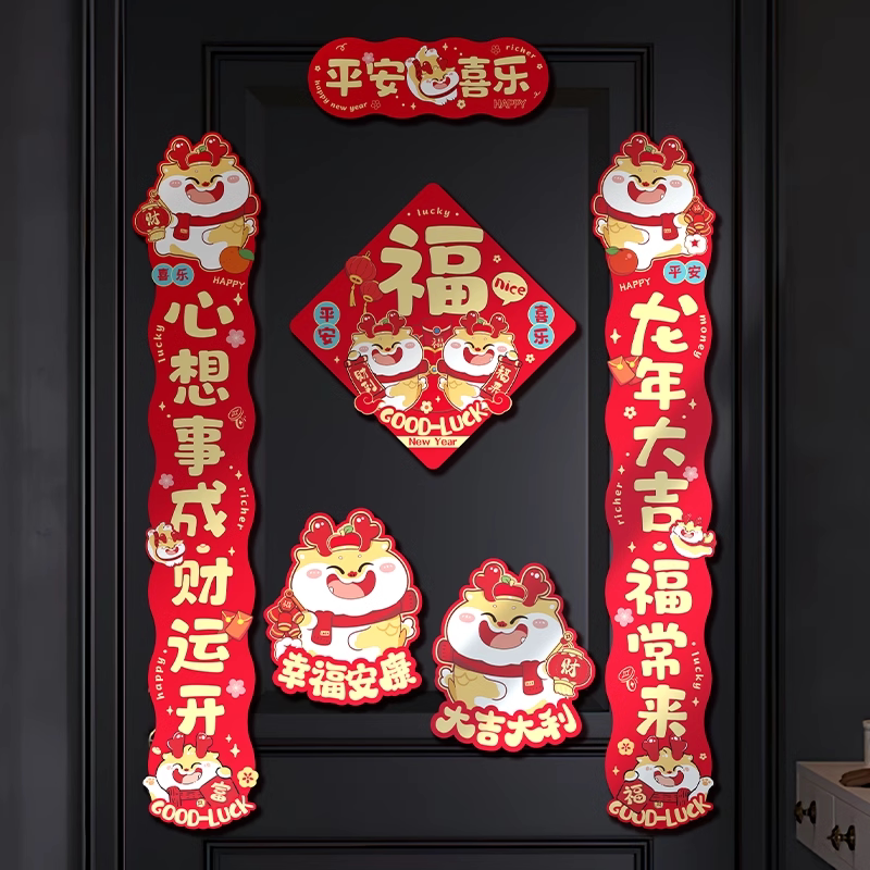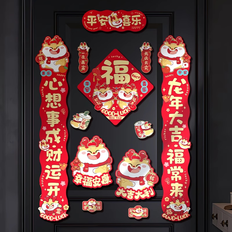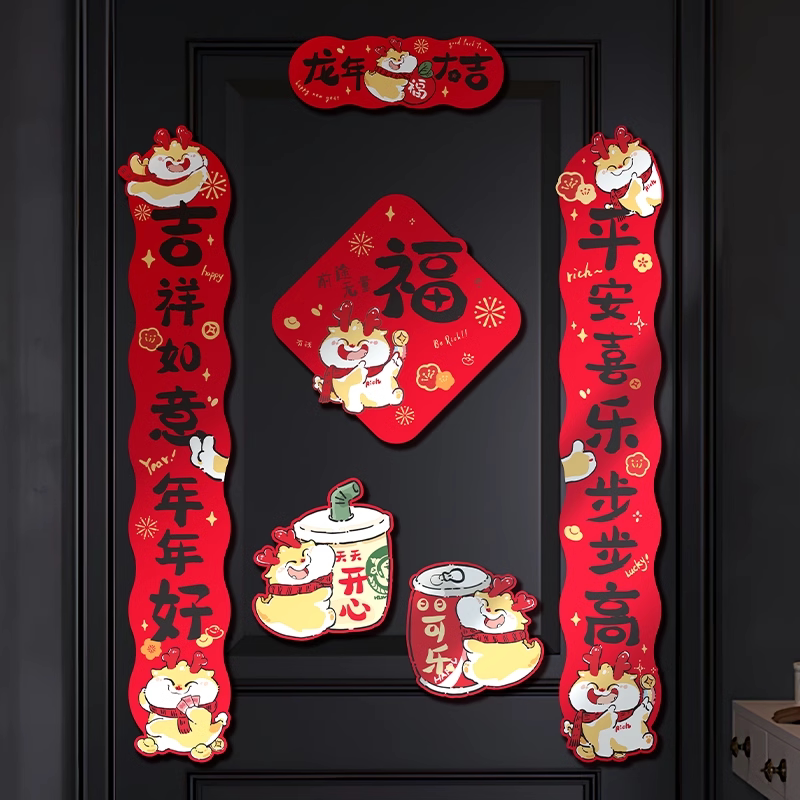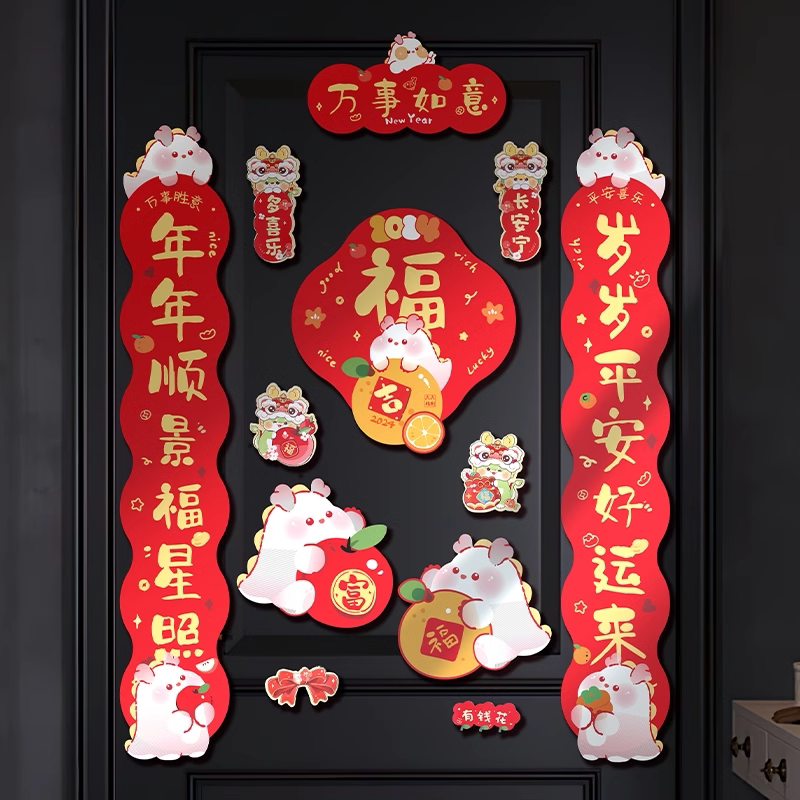 Magnetic attraction to the couplets 2024 New Year Spring Festival Spring Festival Spring Festival Spring Festival Spring Festival Grand Gate Creative cute cartoon door amplitude sticker-Taobao
