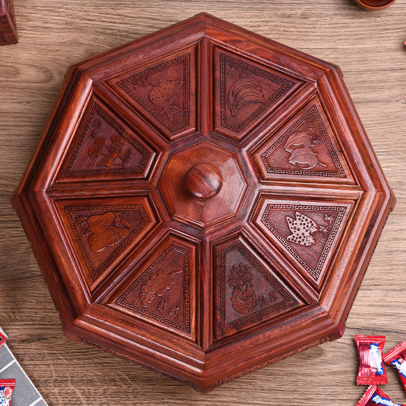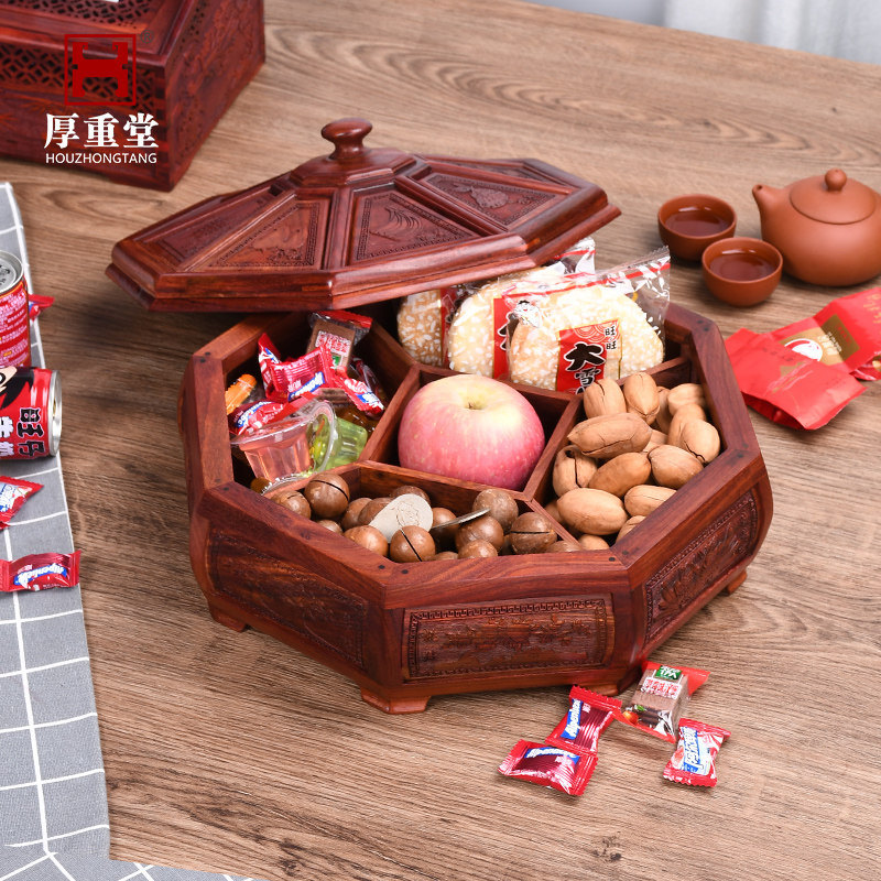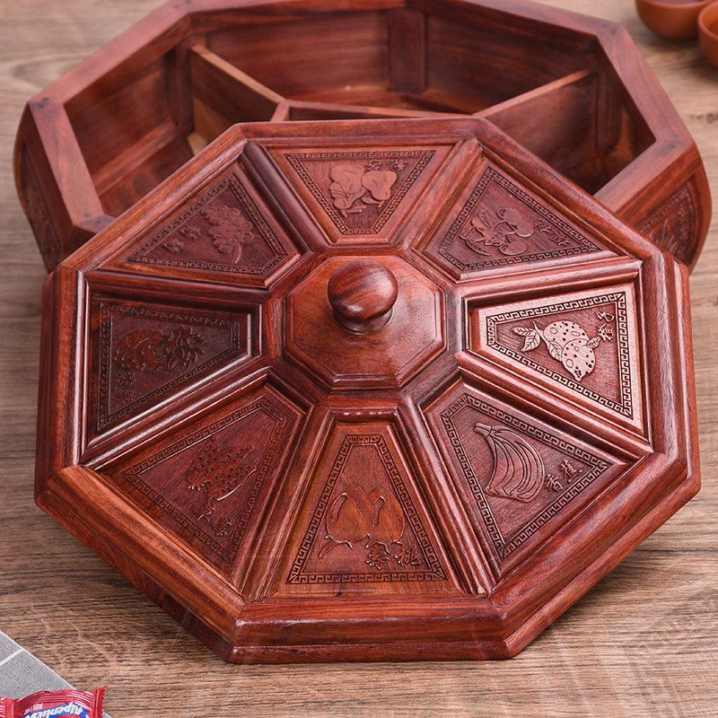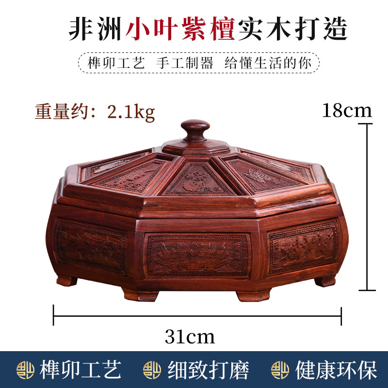 Zambia blood sandalwood fruit plate new Chinese style living room household mahogany dried fruit box divided solid wood fruit melon seeds candy box