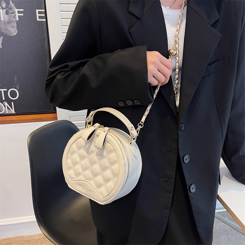 Rhombus chain small bag women's zipper Messenger bag shoulder handbag round bag Japanese high-quality texture niche light luxury