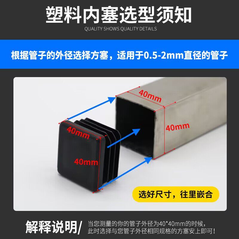 Plastic square pipe plug, inner plug, pipe plug, steel pipe head, steel pipe sealing cap, stuffy head, table and chair foot cover, furniture foot pad