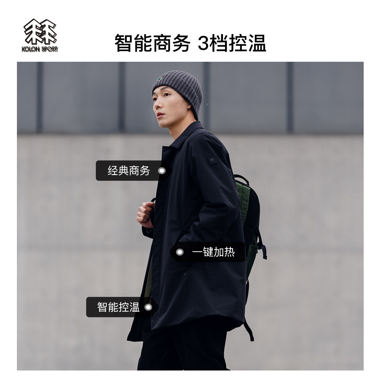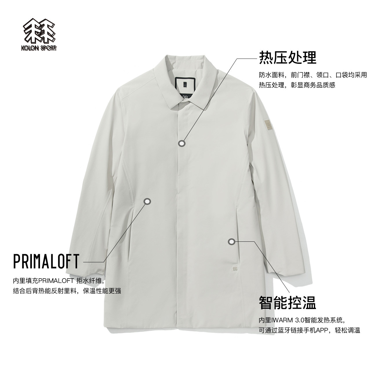 KOLONSPORT COTTON CLOTHING Male Waterproof Splash Water Overdraft Business Casual Smart Heating Medium Long cotton clothes-Taobao