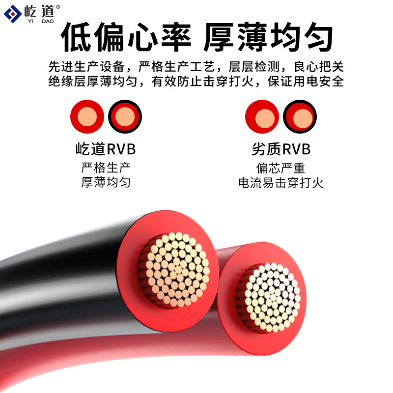 (2×0 5 square)RVB red and black line-100 meters (2×0 75 square) RVB red and black line-foot of 100 meters (2×1 0 square) RVB red and black line