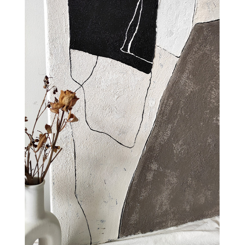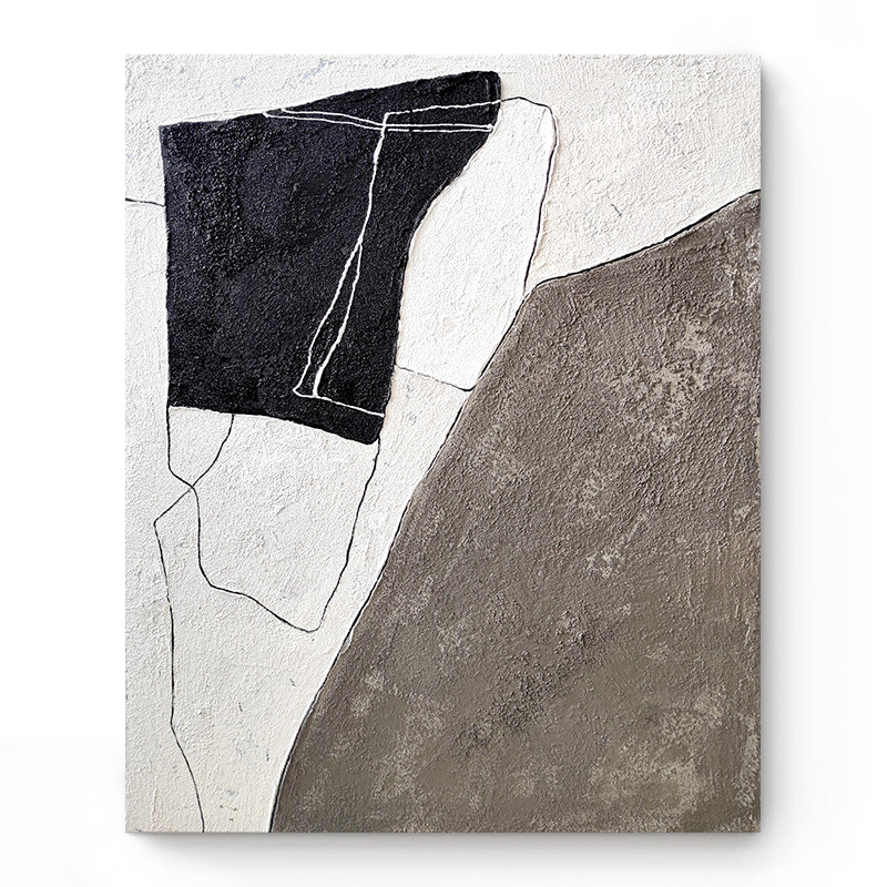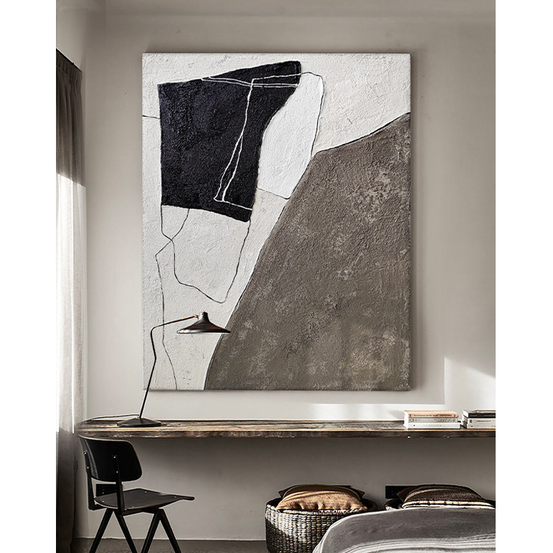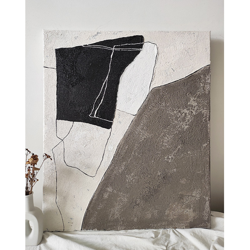 Pure hand-painted oil painting abject wabi sabi style three-dimensional texture decorative painting simple abstract black and white gray living room sofa hanging painting - Taobao
