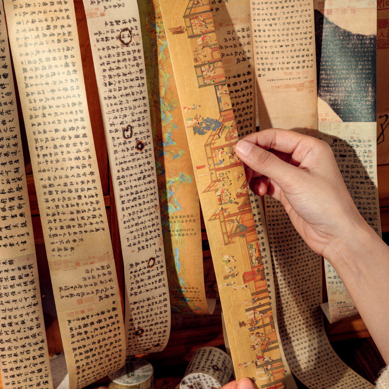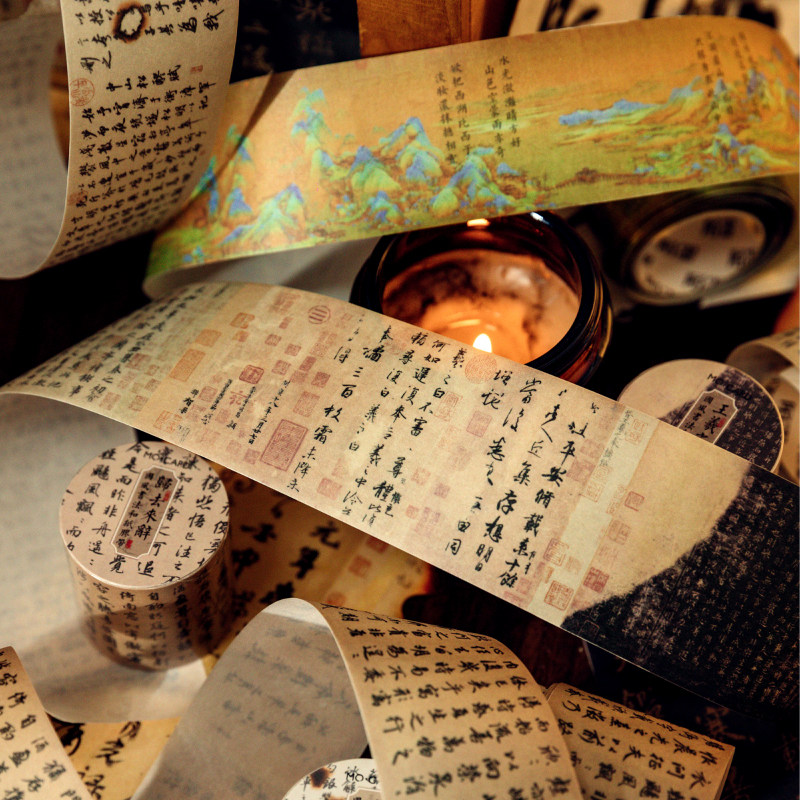 Ancient style paintings and paper tape 2 Chinese classical passage calligraphy script shan Wang Xizhou hand decoration sticker