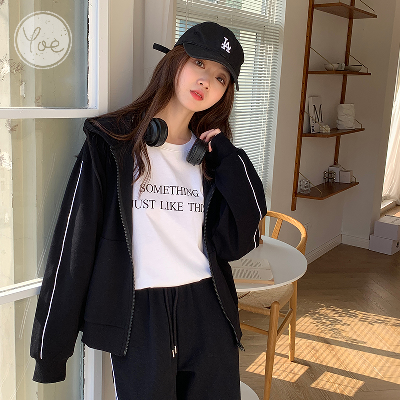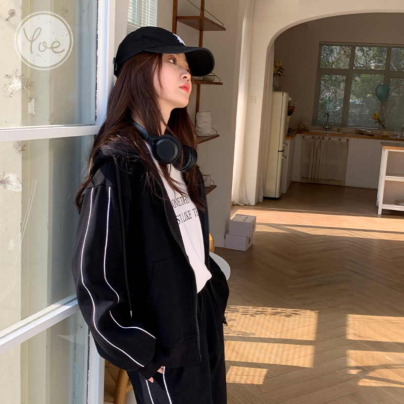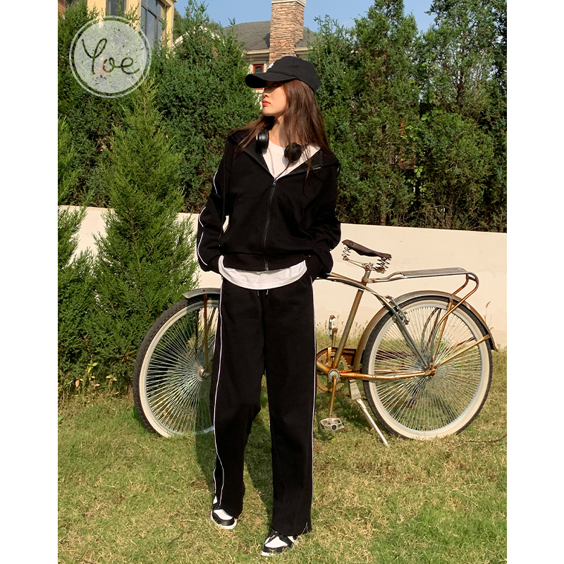 yoe23 Autumn Clothing Sportswear Sports Suit Women Black Casual Two Sets of Korean Lean Tracksuit Sweatshirt Jacket-Taobao