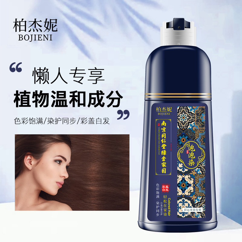Nanjing Tongrentang Chestnut Brown Chocolate Color One Wash Black Dye Cream Woman at home Dyed Hair Bubble Plant Pure