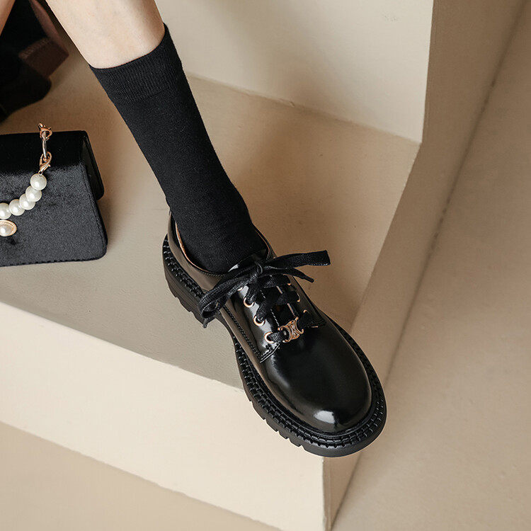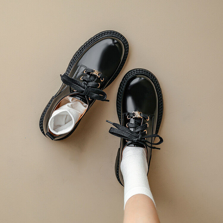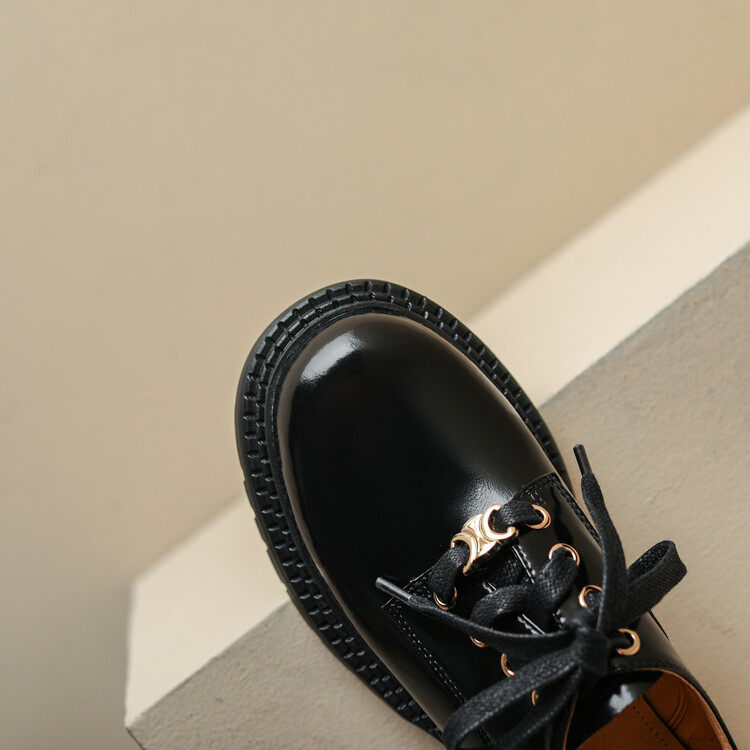 Triumphal Door thick Lefu shoes matte English wind leather round heads with small leather shoes 2023 new single shoes