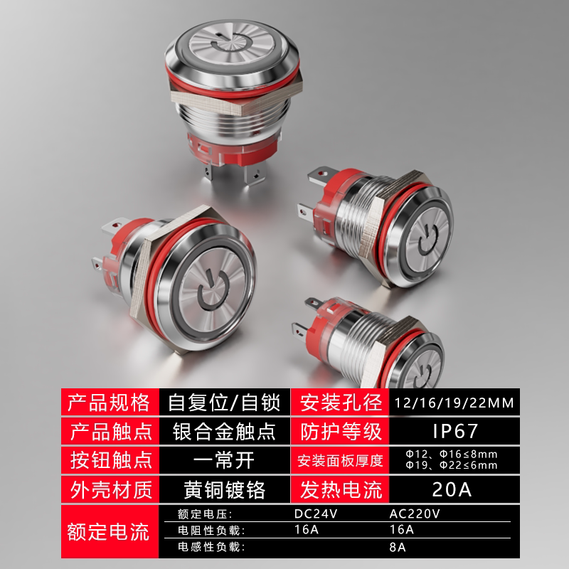Synergy Canon metal button switch 12 16 19 22mm 22mm-lock self-20A waterproof large current car retrofit-Taobao