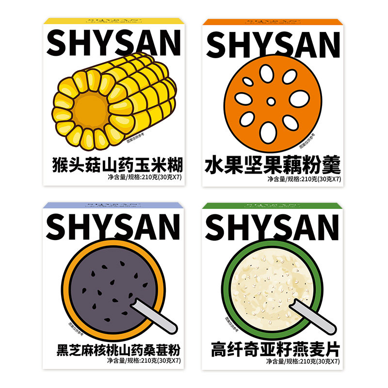 Monkey-headed mushroom mountain corn-powder 1 box of high fiber chia seed oatmeal 1 box of fruit nut-nut powder 1 box of black sesame walnut powder thick fragrance 1 box of black sesame walnut powder concentrate 1 box of essential package for hoarding four flavors each