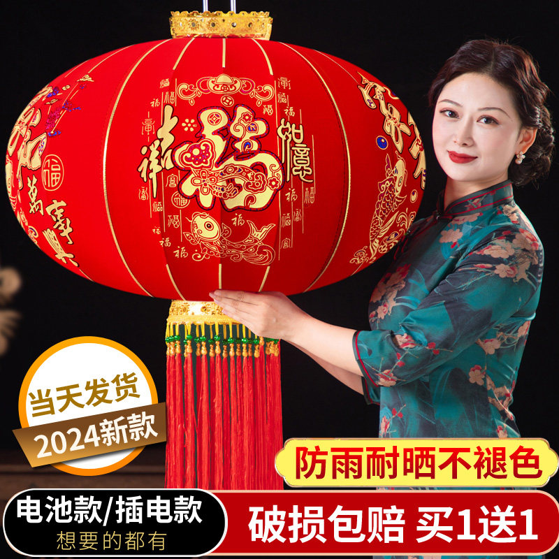 2024 new large red lantern lantern pendant light balcony large doorway pair of outdoor dragon Year Spring Festival New Year decorations-Taobao