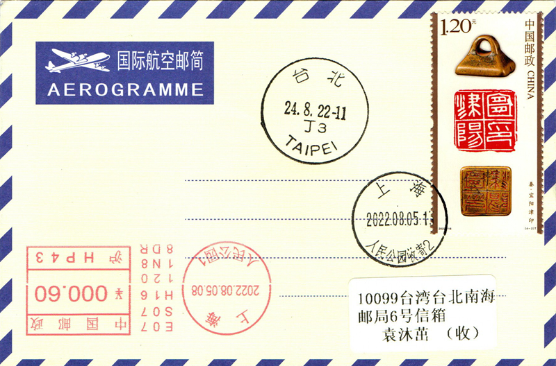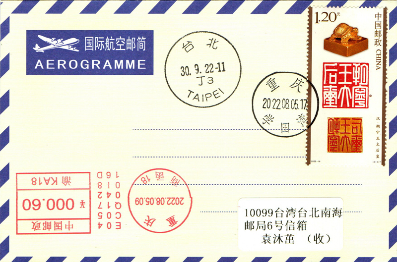 2022-16 Chinese seal engraving stamps collection 4th Place on the first day of the first day of the airmail Brief 4 Ping-Taobao