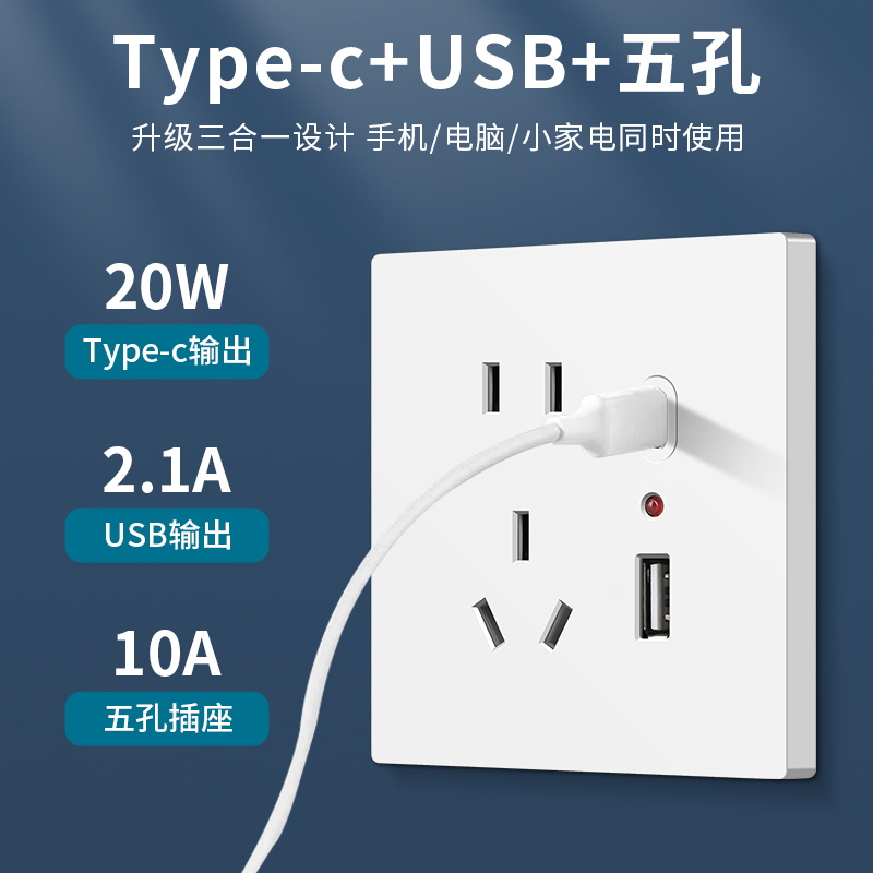 Type 86 type-C quick-charging USB socket switch panel wall phone charging home 5-hole 18W-Taobao