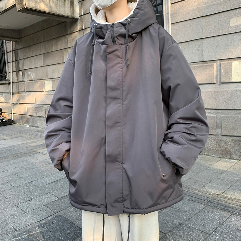 Lamb suede cotton clothes men's winter day series retro teenagers Lieven cap cotton clot jacket plus suede thickened loose cotton padded jacket-Taobao