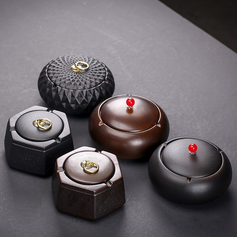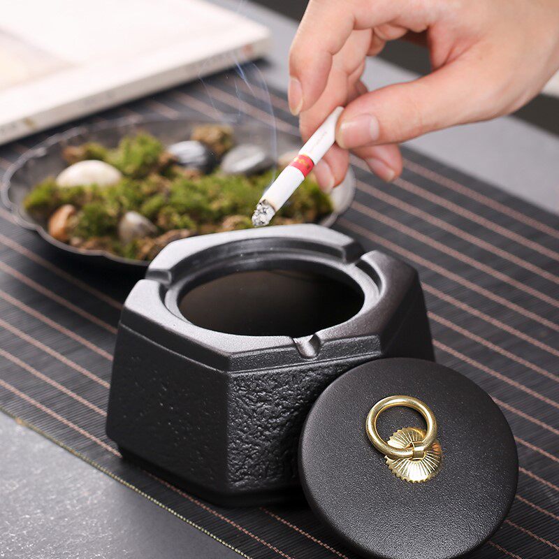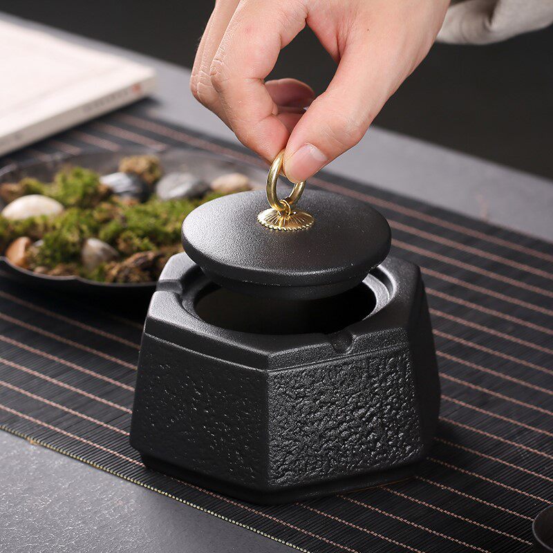 Black pottery hexagon ashtray black cylinder black cylinder black cylinder large mouth ashtray large mouth of smoke ashtray - Ya black