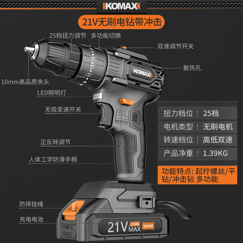 21V brushless electric drill