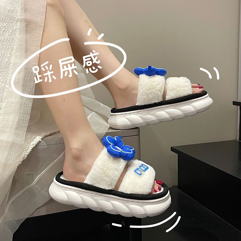 Cute flowers fur slippers female outwear 2022 fall new thick bottom indoor home lined with tumult füfu shoes