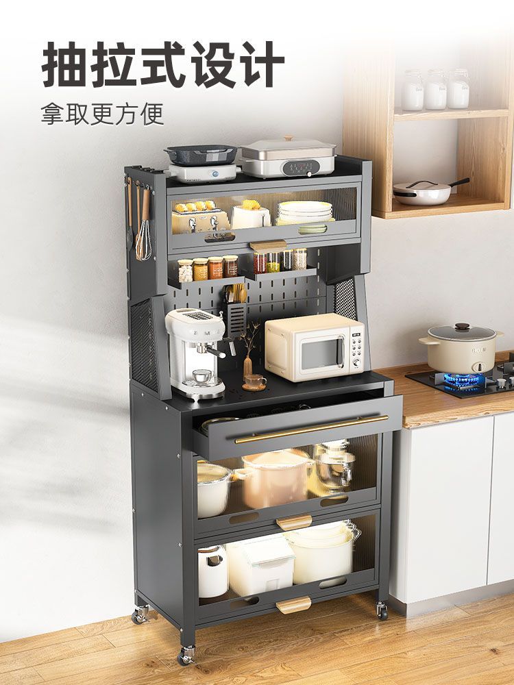 Drawer-type dongle plate kitchen shelve with floor multilayer cupboards oven Oven Microwave Oven-equipped shelves