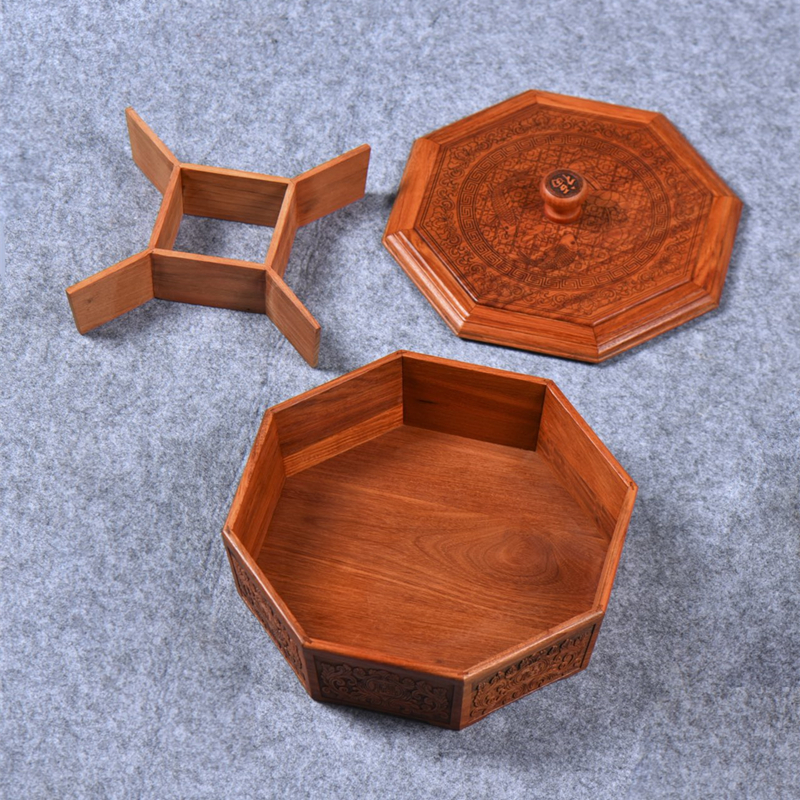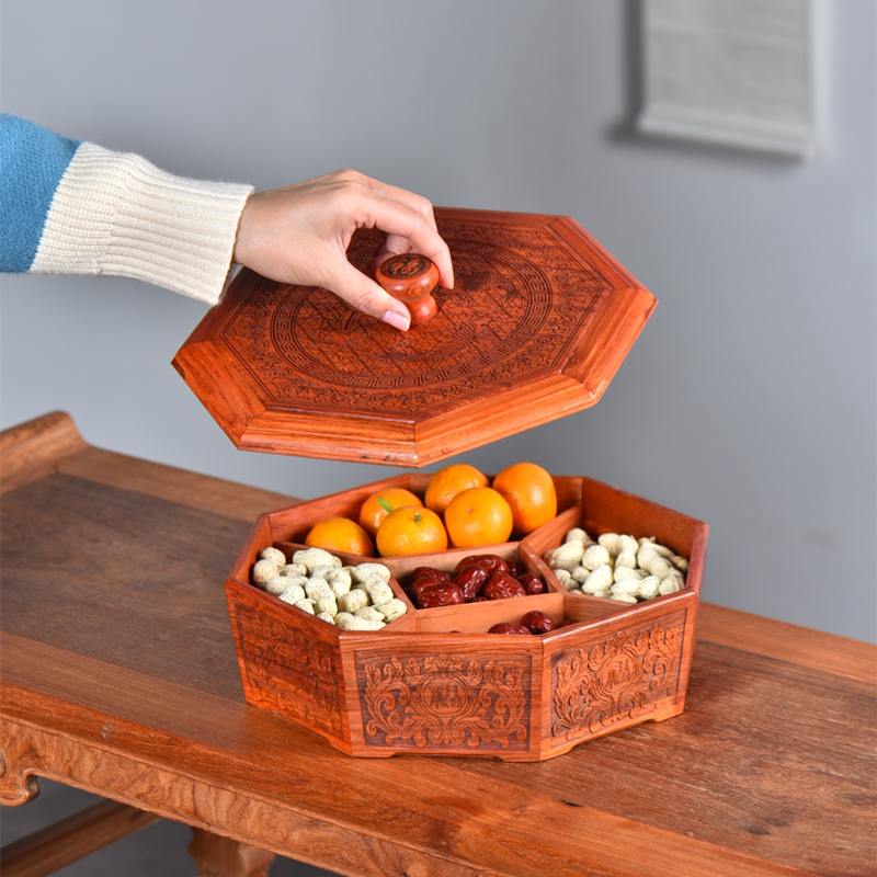 Burmese pear mahogany dried fruit plate solid wood Chinese-style living room commercial big fruit red sandalwood fish candy box decoration every year