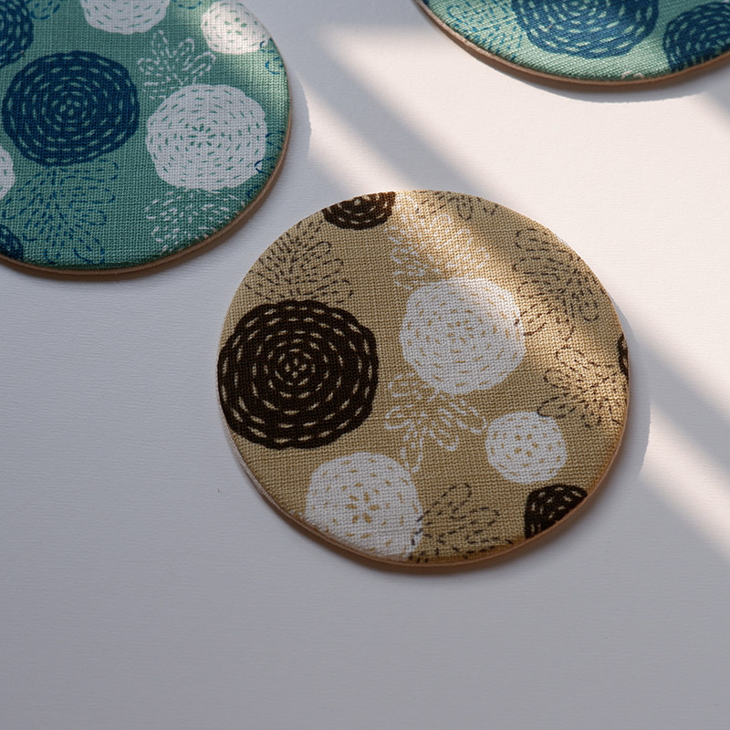 Simple handmade fabric round quilted placemat coaster oval one person eats one person drinks tea mat