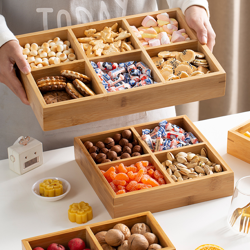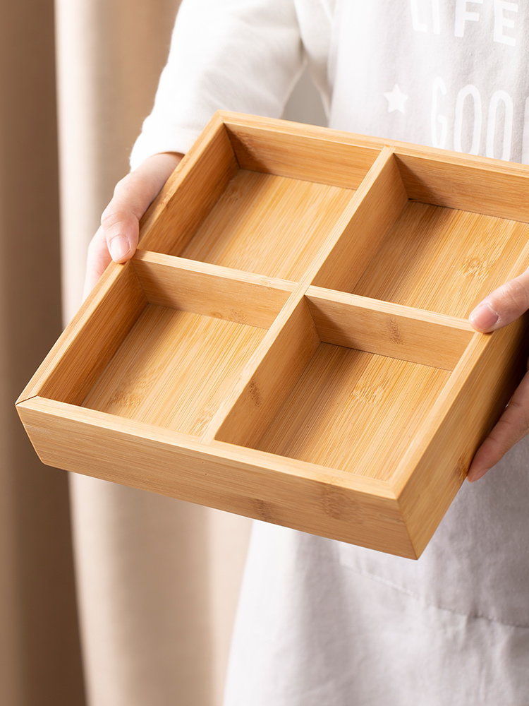 Round stove cooking tea tray appliances full set of snacks fruit tray Water fruit tray 4 Miyako wood Nine Miyomiya lattice dried fruit pan tea tray-Taobao