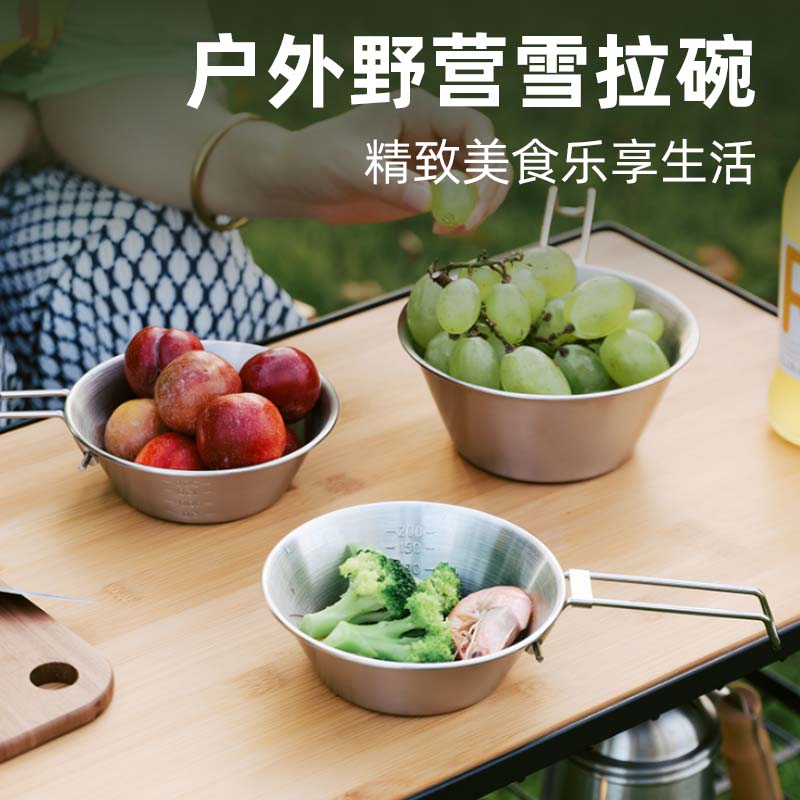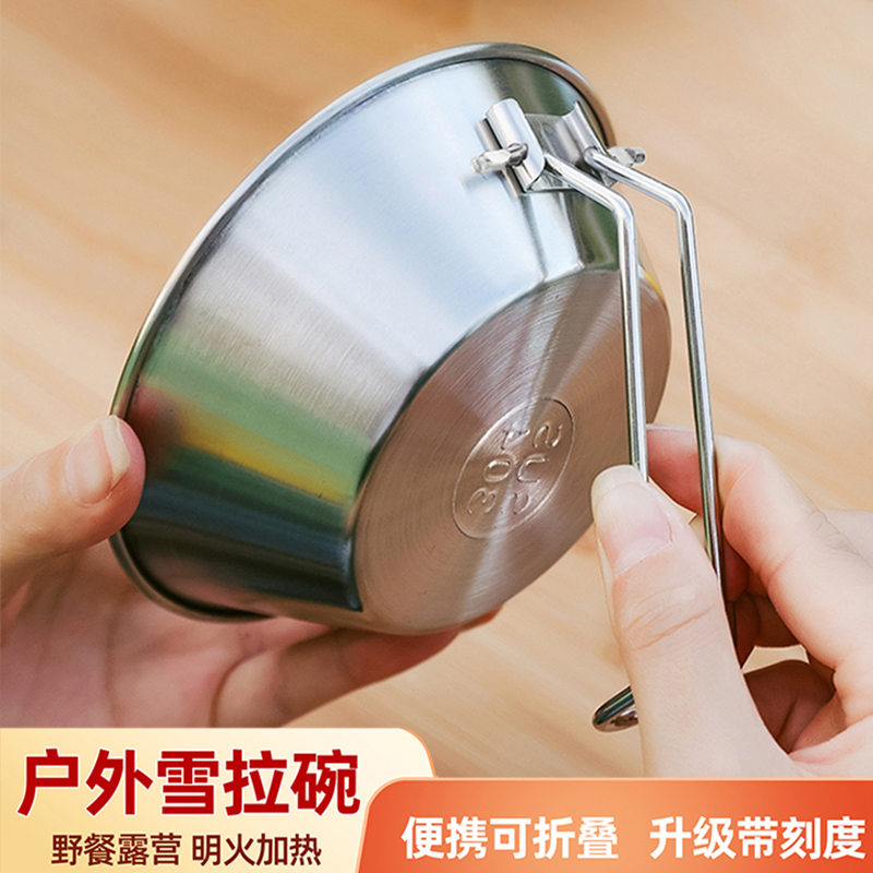 OUTDOOR FOLDABLE SNOW PULL BOWL CAMPING STAINLESS STEEL CUTLERY WILD COOKING PORTABLE SNOW PULL CUP CAN HEAT UP 304 BOWL SUIT-TAOBAO