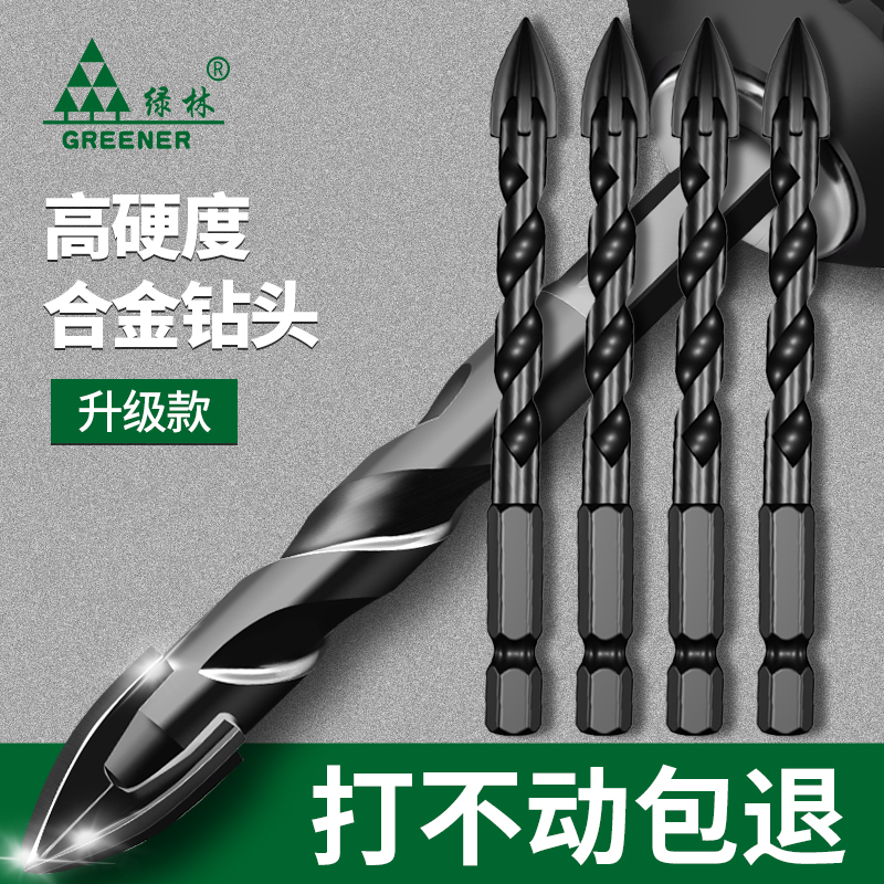 Green Forest Tile Drill Bit Punching Special Concrete Open Pore Four-Edged Barking Alloy Triangle 6mm Cross Cement Transfer-Taobao