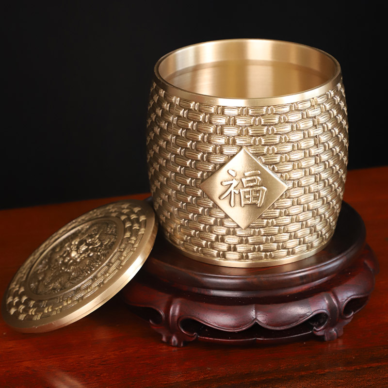 Fumantianxia pure brass embossed tea caddy storage jar gift box for self-use with face