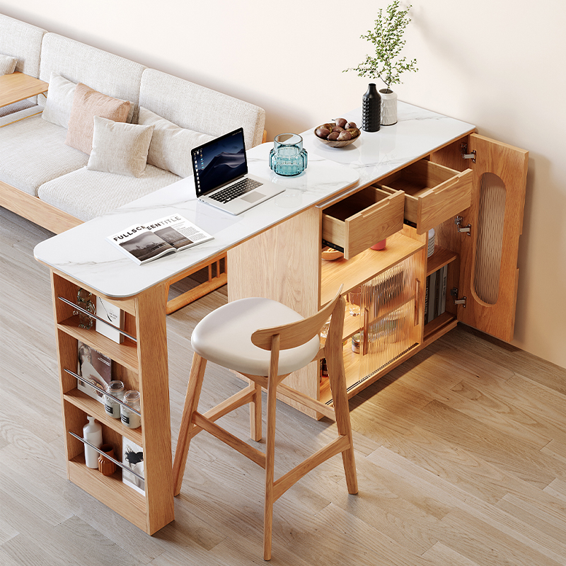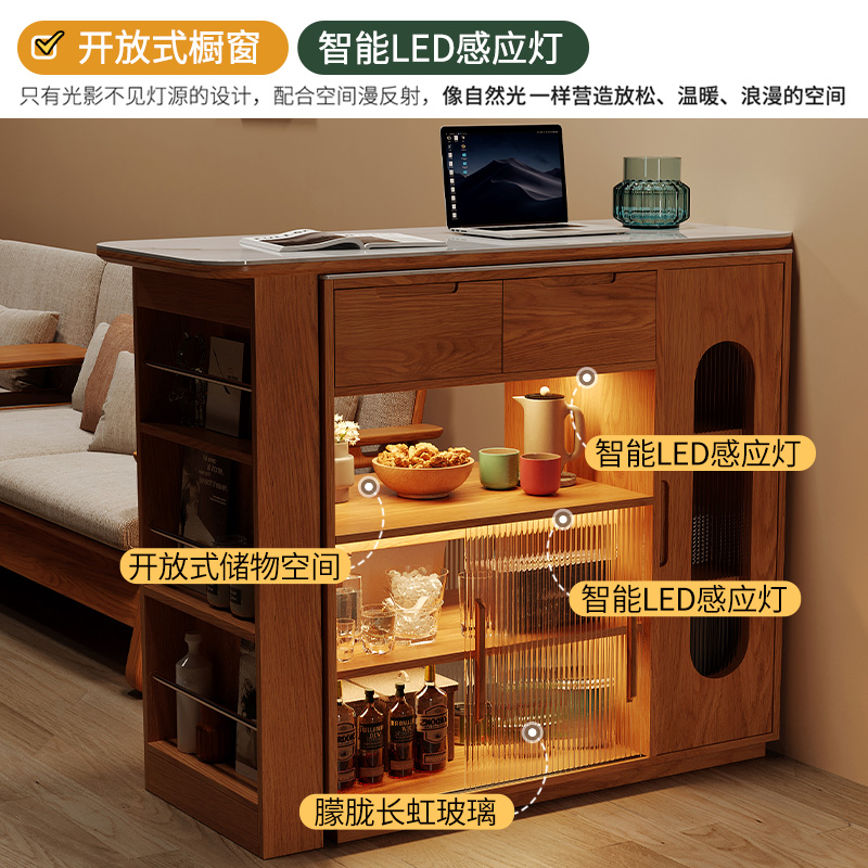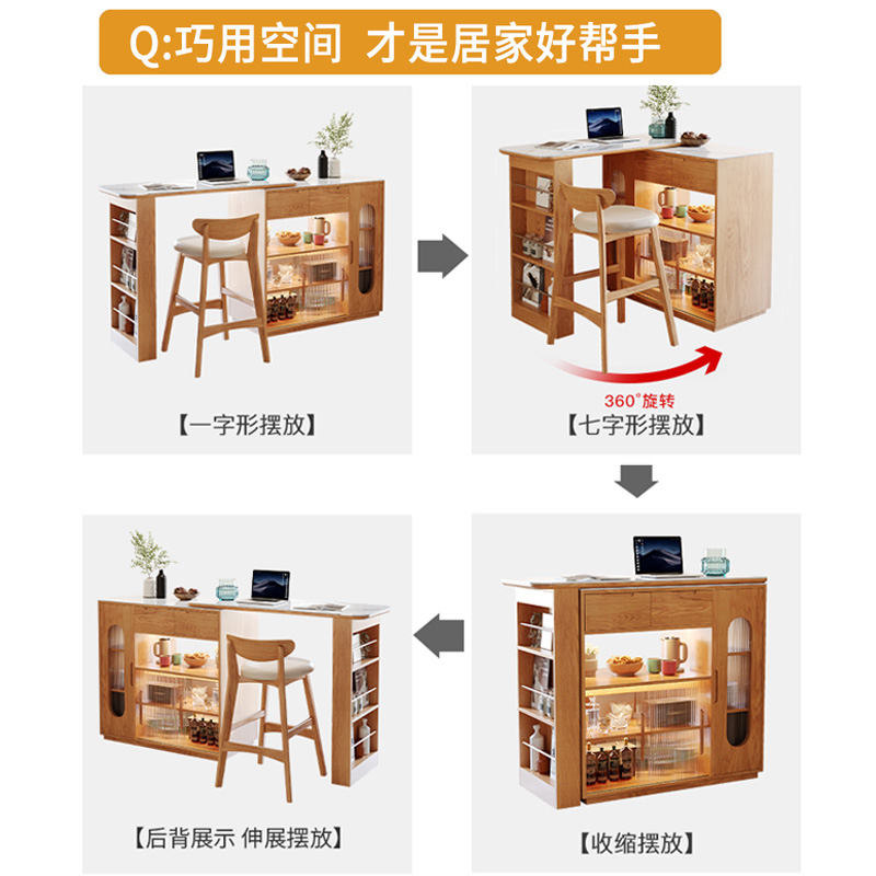 Modern minimalist multifunctional Japanese-style slate bar partition integrated telescopic movable dining table small-sized bar cabinet