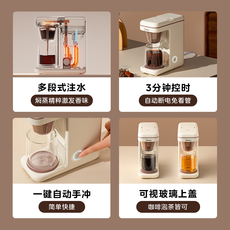 Beauty coffee machine Home Small fully automatic office integrated American drip-type drip-filter cooking coffee maker-Taobao