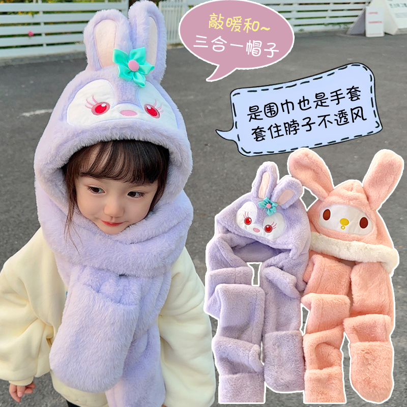 Children Star Della Hats Scarves 2023 new autumn and winter plush gloves scarf girth girl girl girl-Taobao