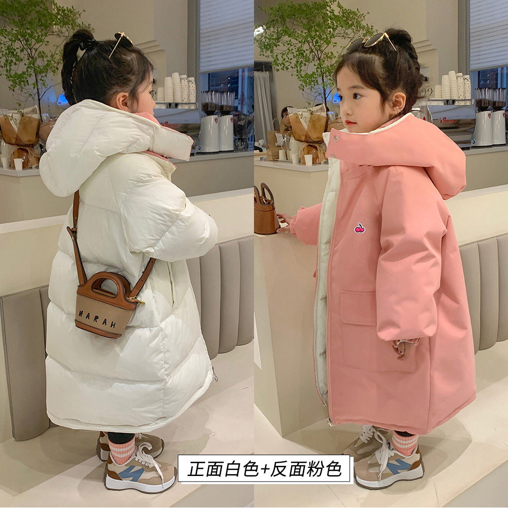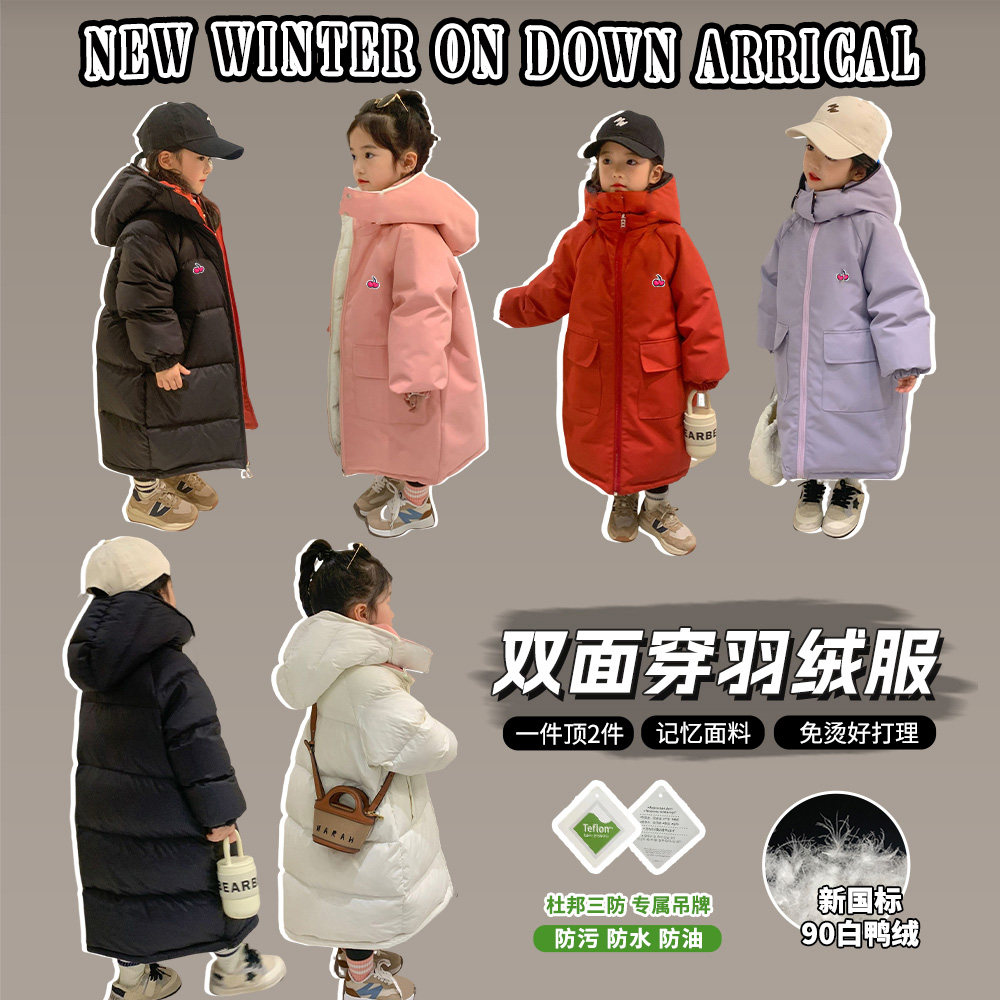 Girl Down Clothes Winter Dress New Ocean Gas Children DuPont Three Defense White Duck Suede Two Sides Wearing Mid-Length 100 lap jacket-Taobao