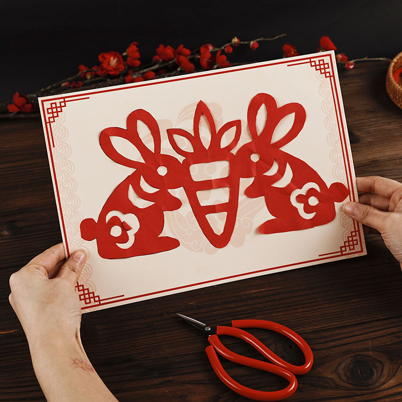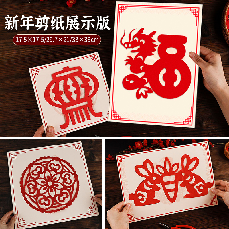 New Year cut paper work framed display card background card A4 bottom plate student cut window flower handmade kindergarten delivery job-Taobao