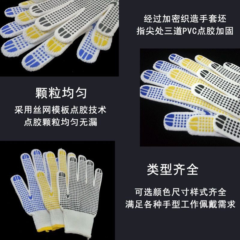Anti-slip wear resistance and thickness gloves work gloves Labor point plastic cotton yarn pearl bead breathable tape rubber workers