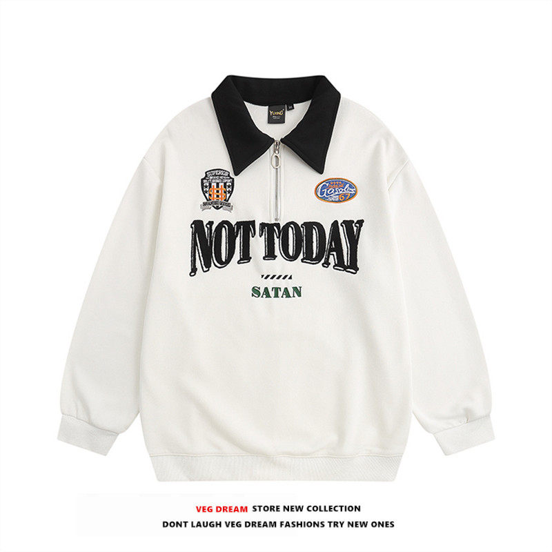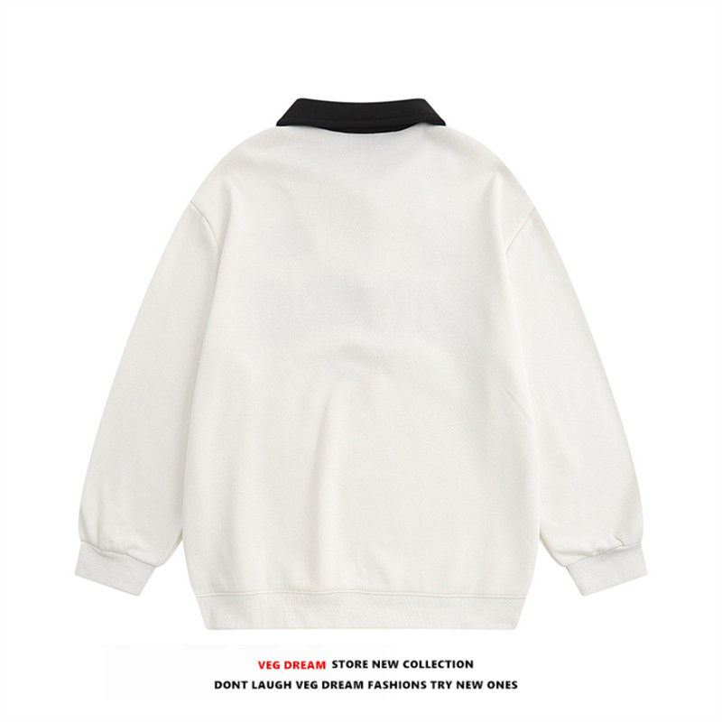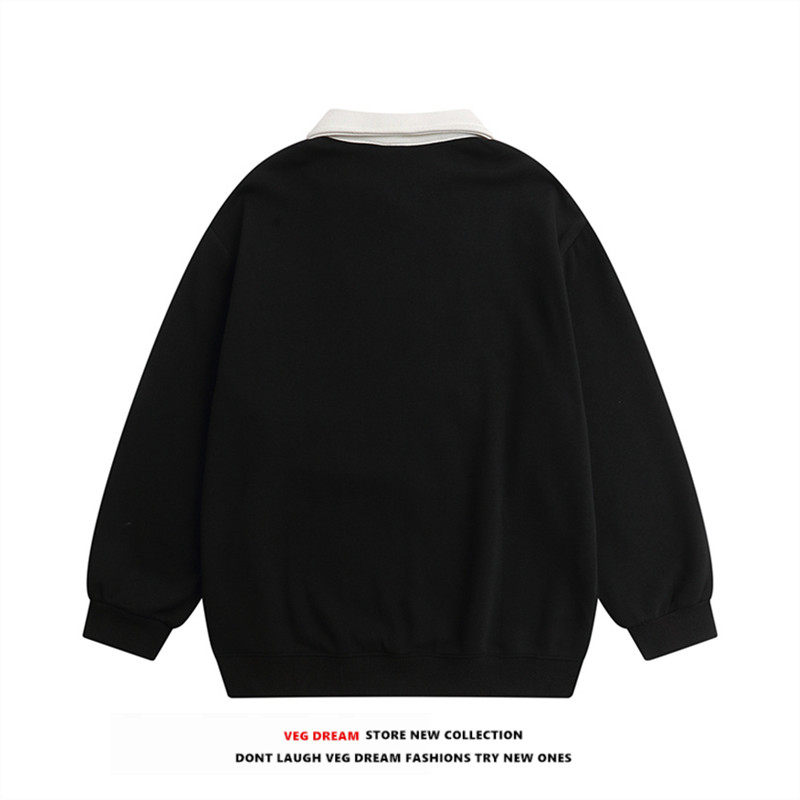 VEG Dream American retro college style POLO collar sweater men and women loose ins niche plus velvet couple jacket