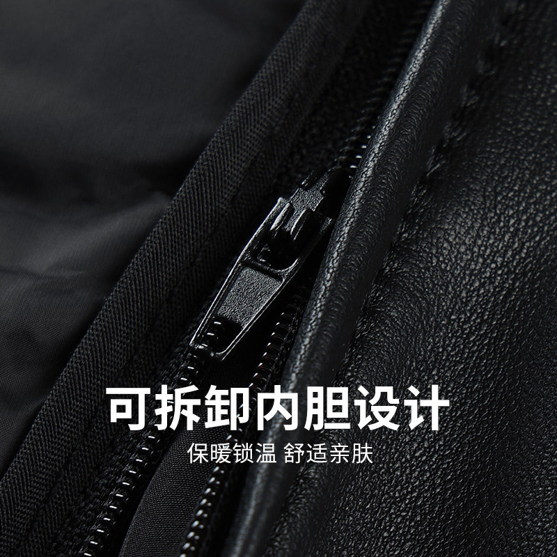 (Liner Detachable) with Wolf Co-Dance Men's Collar Leather Clothes Man 2023 Autumn Winter New Warm Goat Leather Jacket-Taobao