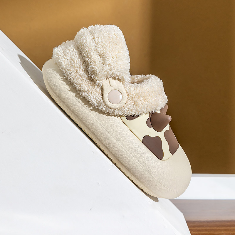 Demovable children's cotton slippers winter boys outdoor waterproof slippers girl dairy cow slippers and cotton shoes