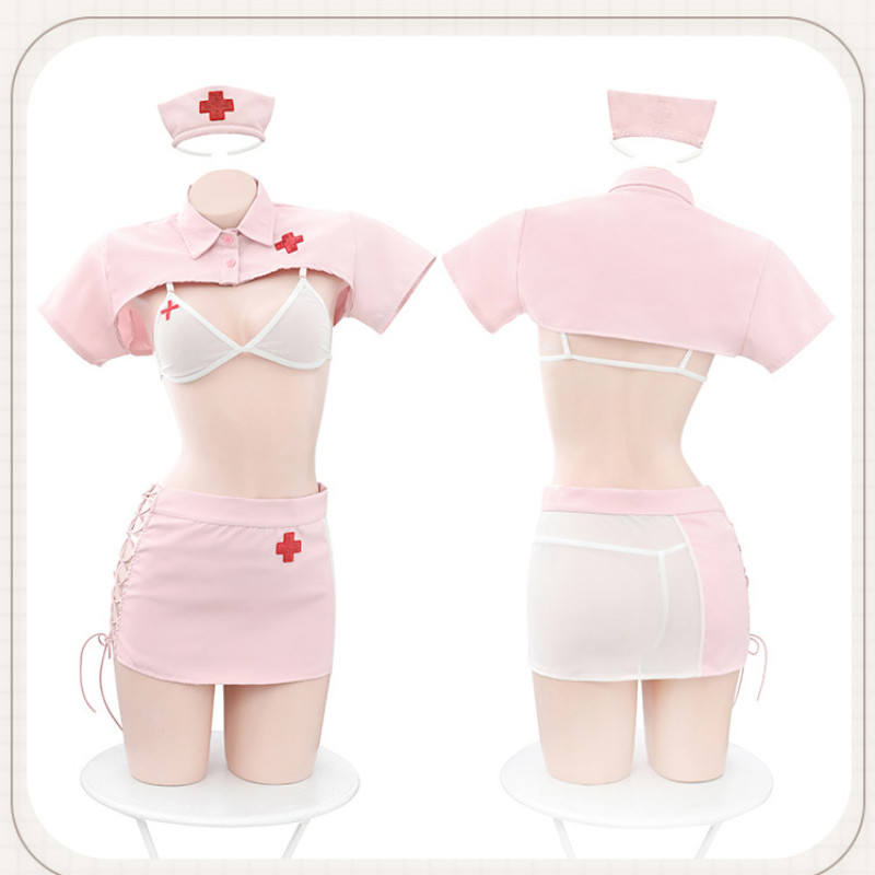 The stethoscope white nurse white nurse white silk socks pink spoil bear nurse (hair hoop short shoulder coat bra skirt) pink dew bear nurse white silk sock pink