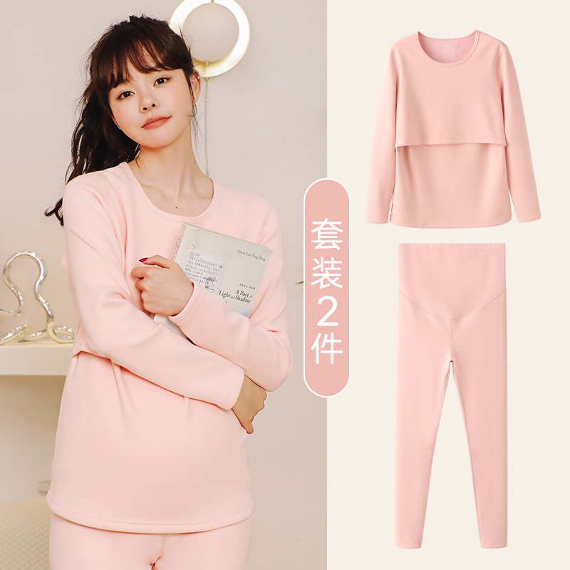 Pregnant Woman Warm Underwear Autumn Winter Plus Suede Thickened Breastfeeding Autumn Clothes Autumn Pants Suit of the month Sleeping Clothes postpartum blouses-Taobao