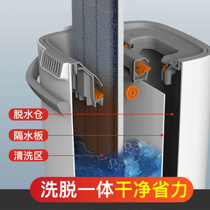 2022 new flat mop household mop bucket free hand-washing mopping artifact for lazy people